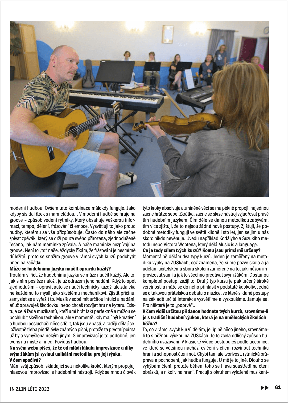 Ta část v nás, která dokázala sedět s nástrojem, hrát a zpívat a zapomenout přitom na čas, ta která byla zvědavá a hladově objevovala, nebála se zkoušet, aniž by ji někdo nutil, nebo se do ní násilím snažil něco “nalít”, ta která postupem času usnula a uvolnila tak místo pravidlům, řádu, shonu, stresu a strachu ze selhání a vlastní nedokonalosti, tu Vítek opět probudil a já můžu s kytarou opět zažívat to, na co jsem už málem zapomněl. Diky!